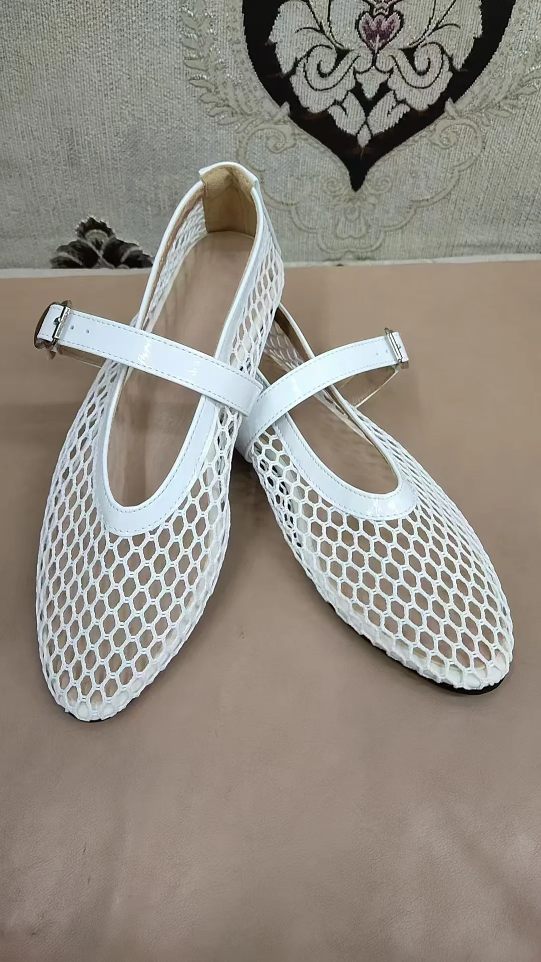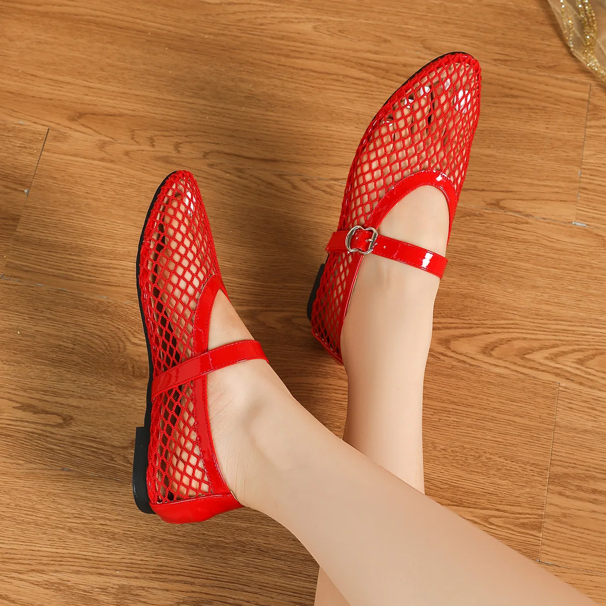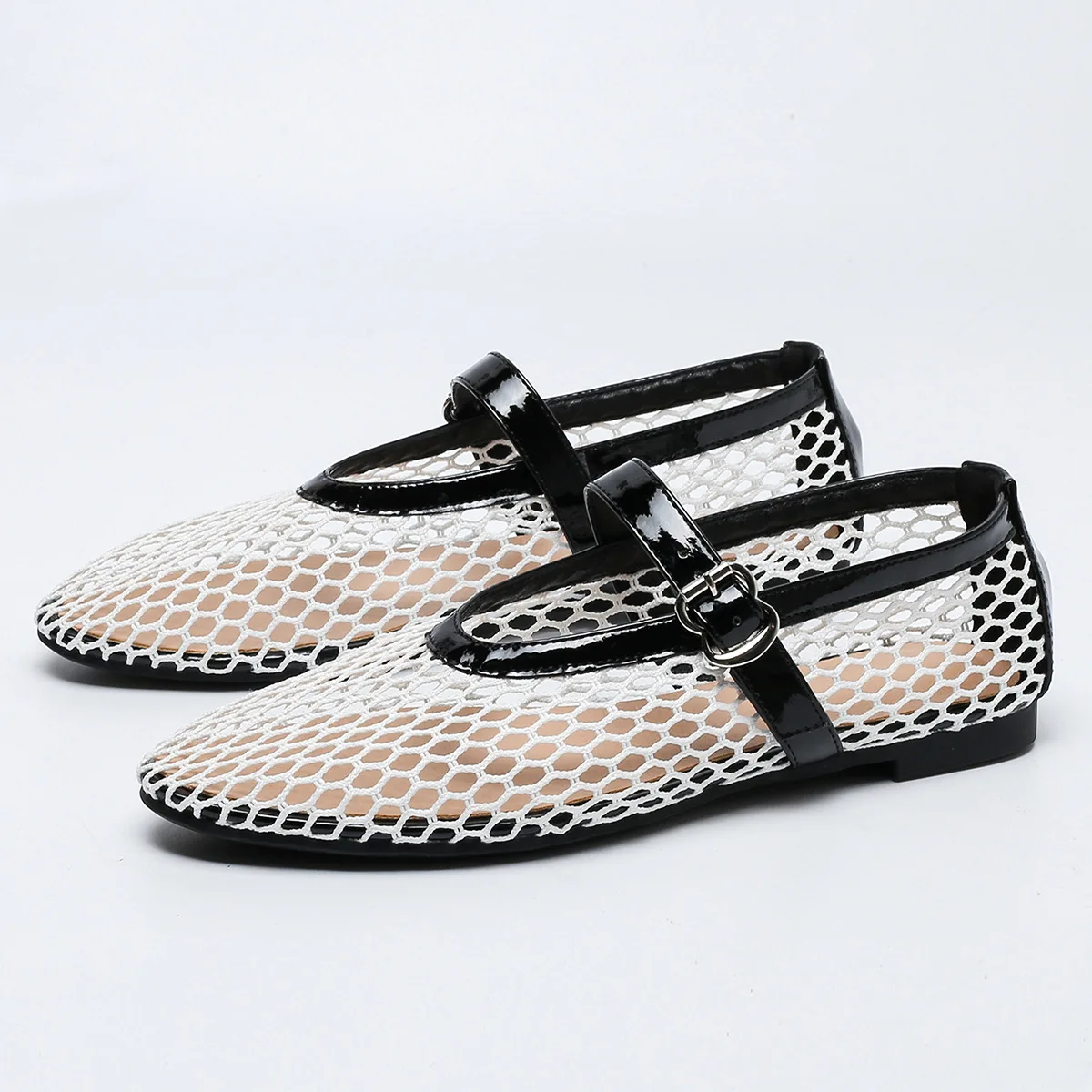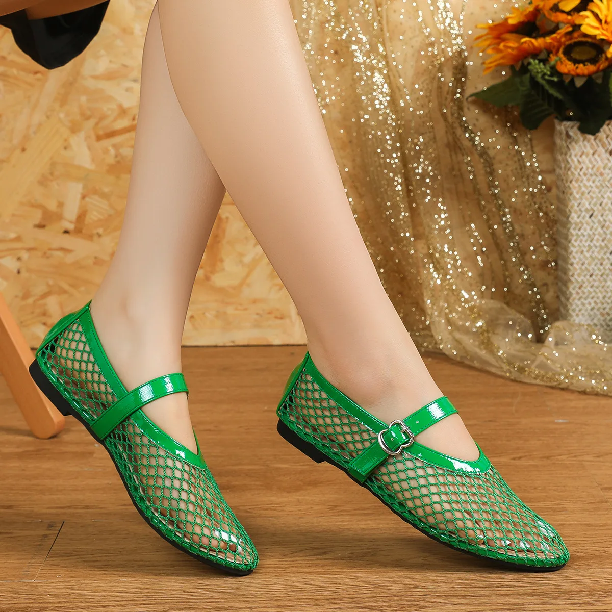 New Summer Mesh Falts Shoes Women Sandals Breathable Ballet Comfortable Mary Jane Leisure Buckle Strap Women Loafers Shoes 2024