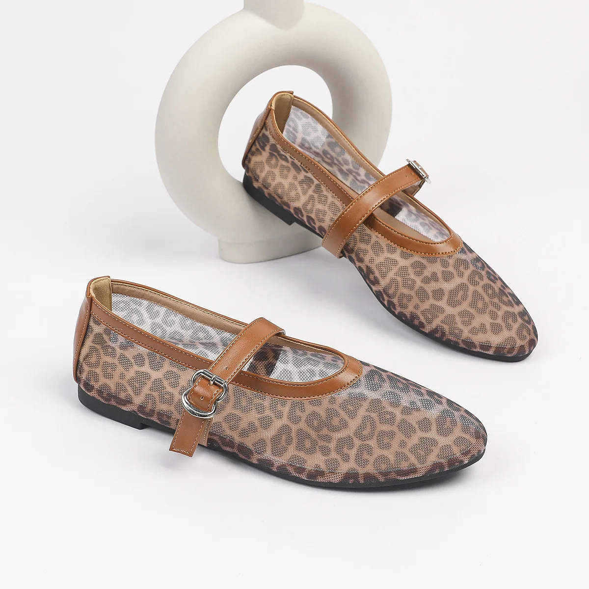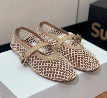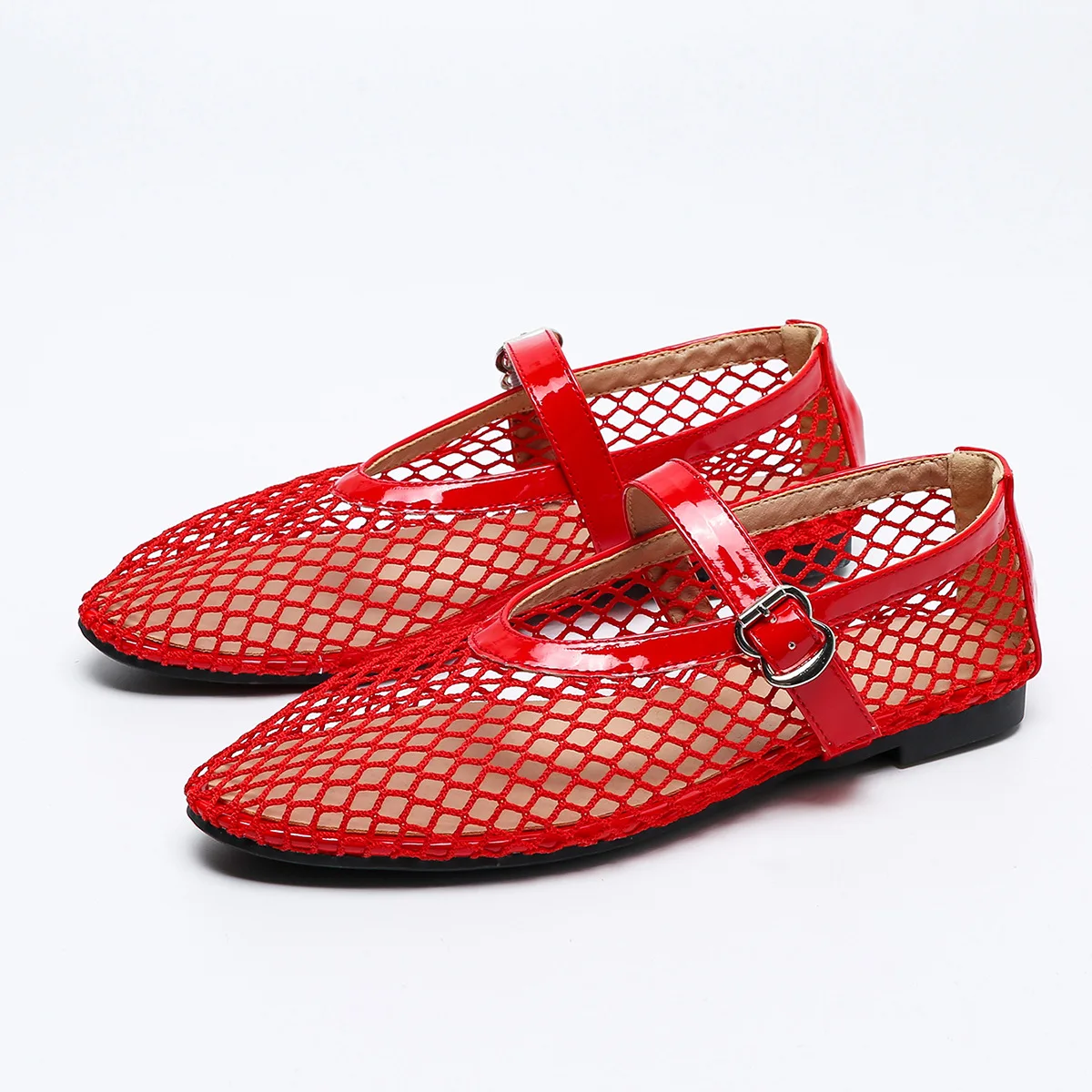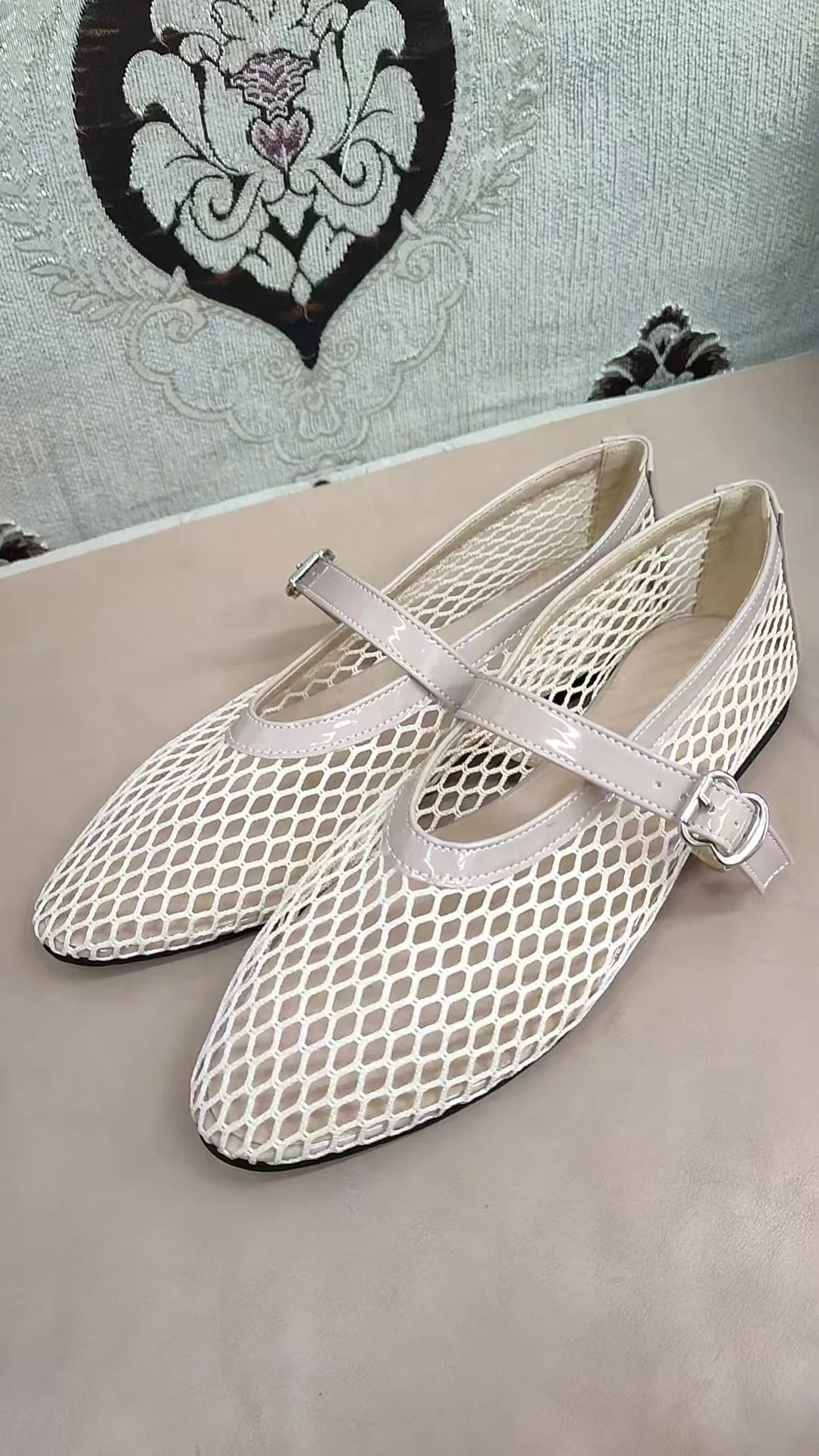 New Summer Mesh Falts Shoes Women Sandals Breathable Ballet Comfortable Mary Jane Leisure Buckle Strap Women Loafers Shoes 2024