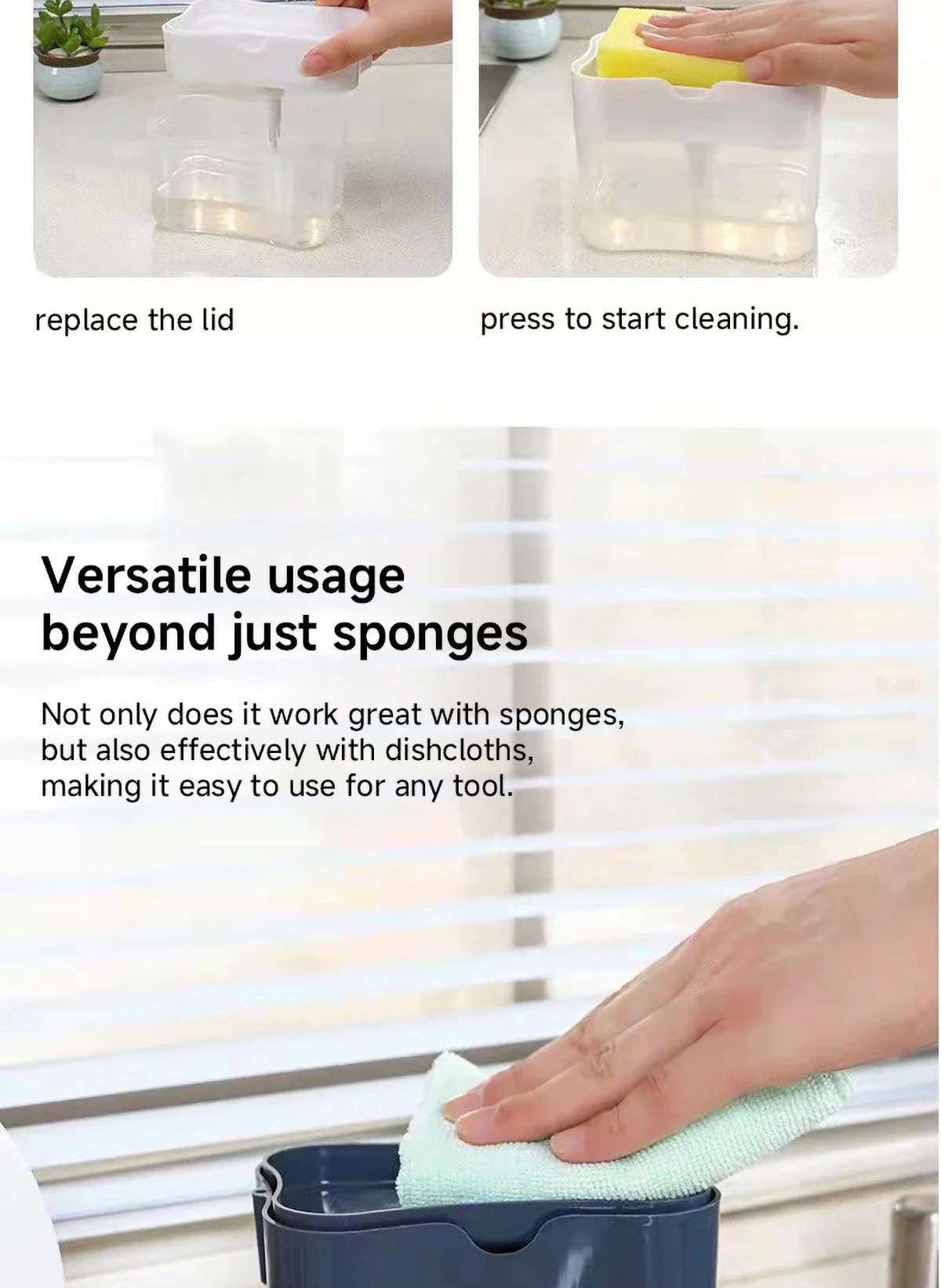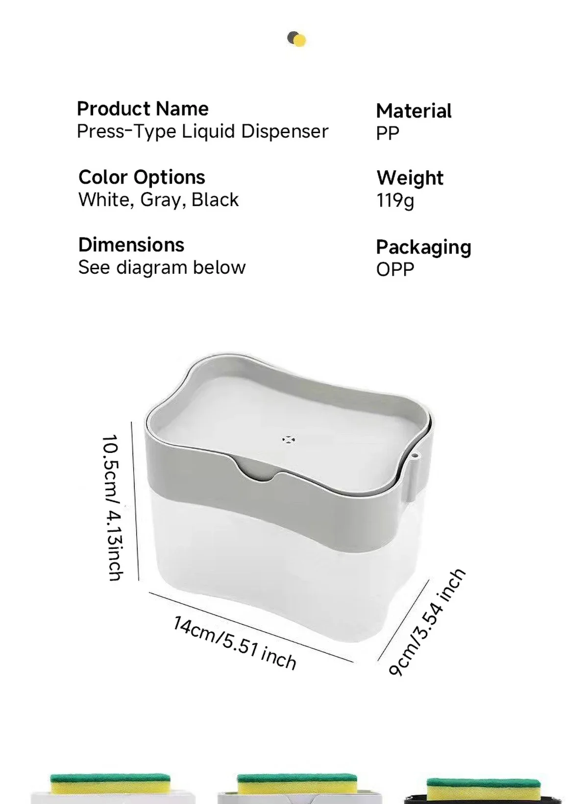Press Soap Dispenser Box Scrubbing Liquid Container Kitchen Bathroom Automatic Detergent Foam Delivery Box with Sponge Holder