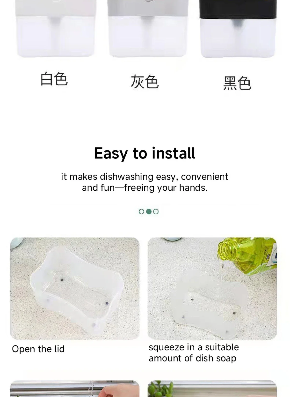 Method: Manually press and gently press the top plate to distribute soap directly onto the sponge. It will sprinkle proper amount of dishwashing soap on the sponge