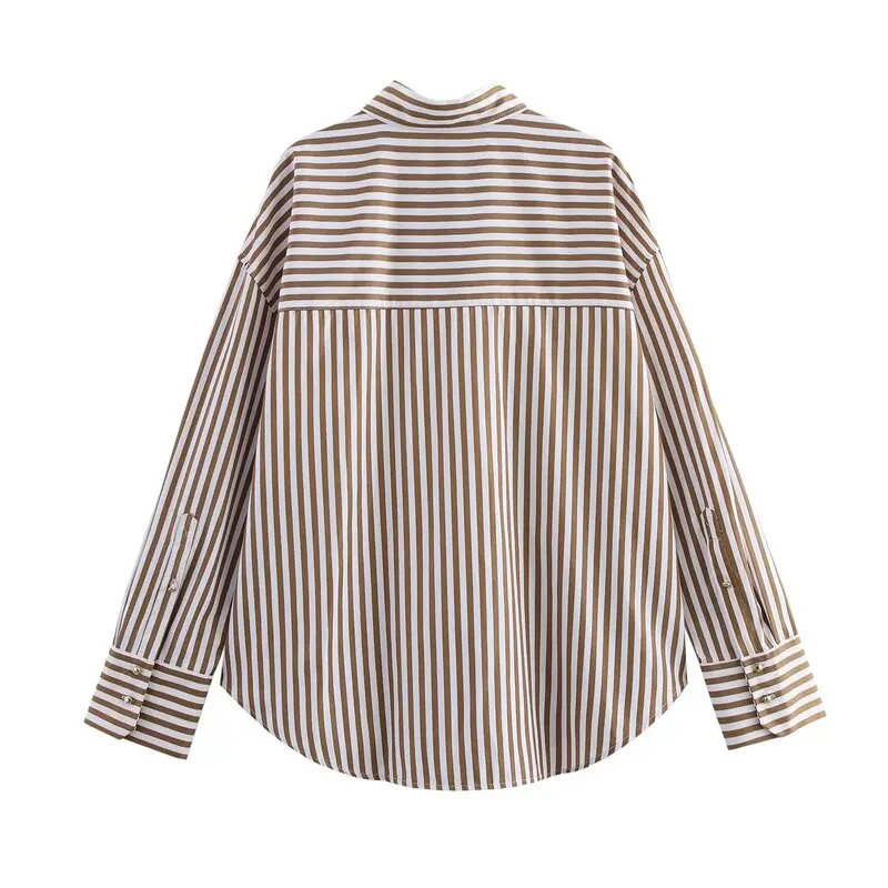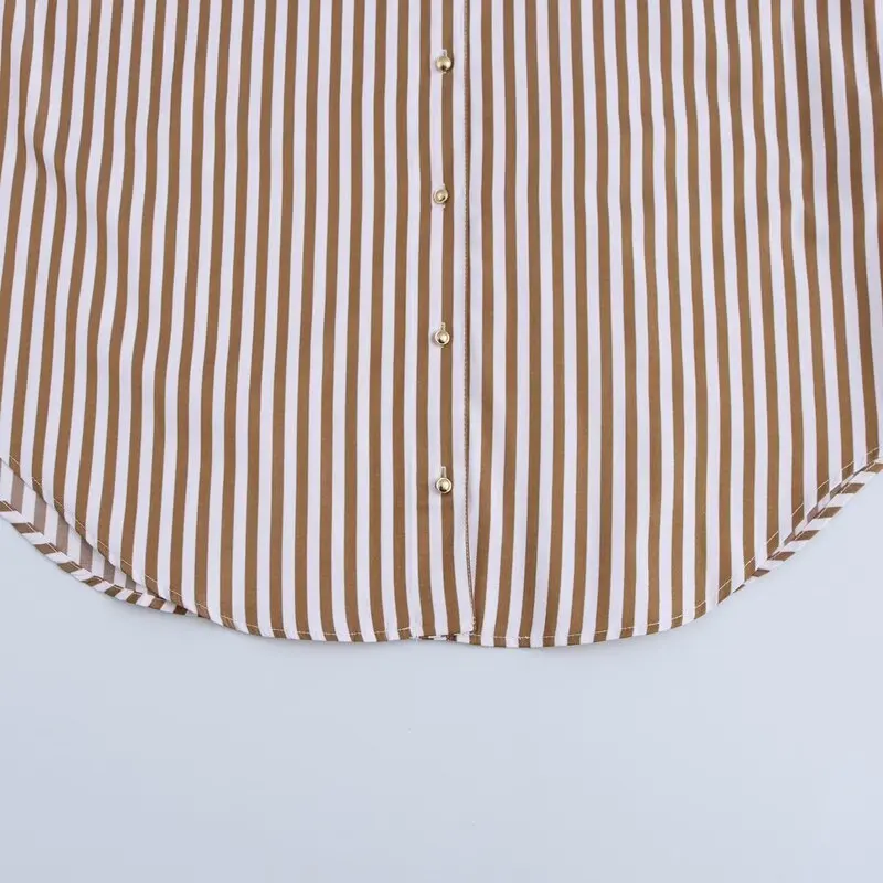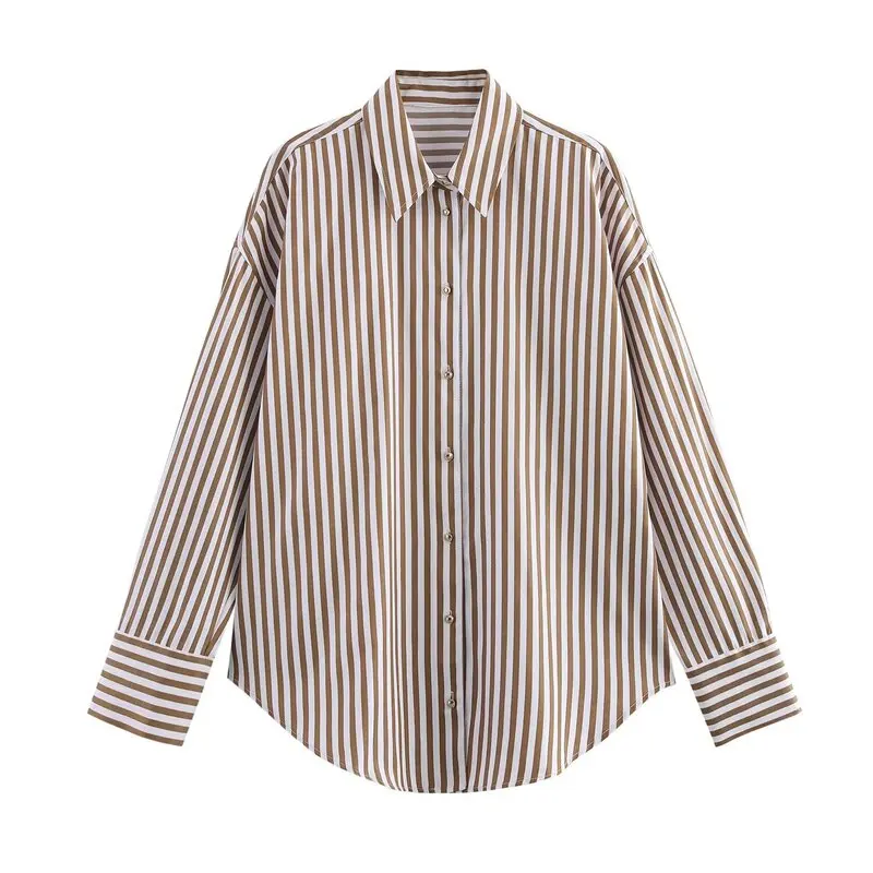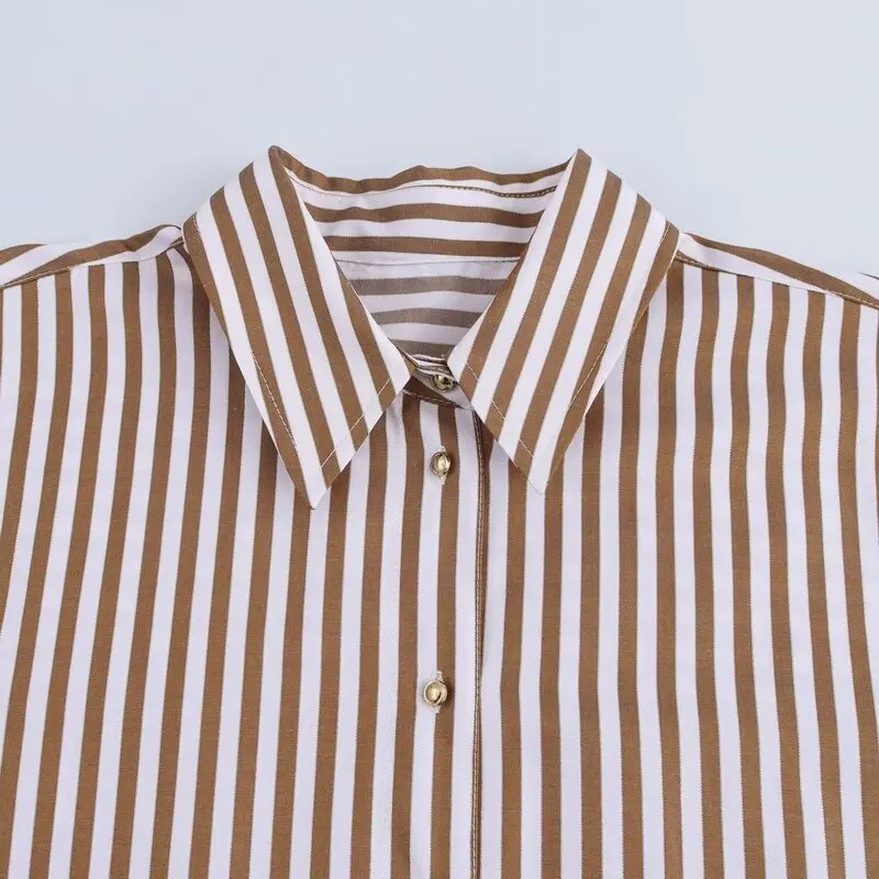 Spring 2025 Women's Faion Metal Tead Striped Long Sve Collared irt New Arrival Versatile Loose Fit Regular Length
